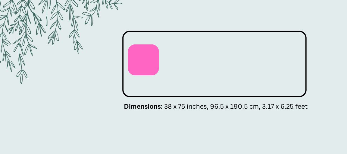 Dimensions (width x length): 38 x 75 inches, 96.5 x 190.5 cm, 3.17 x 6.25 feet